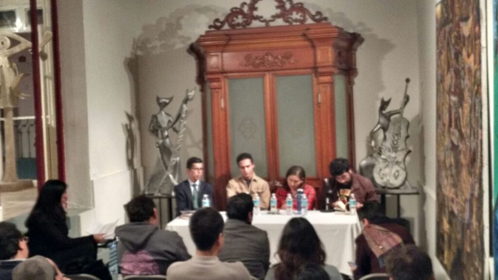 Luego de la lectura, los poetas respondieron algunas preguntas de la audiencia. A la pregunta de “¿Por qué escriben?” Respondieron que: “Porque es divertido” (Eduardo Padilla), “Porque es gratis” (Jorge Zarzi), ““Porque es catártico con la neurosis” (Minerva Reynosa). A la pregunta de cómo hacen para vender su trabajo, Amaranta Caballero Prado habló sobre la posibilidad de recurrir a becas y programas para publicar; que es una muy buena ganancia la de ver publicada profesionalmente tu obra y que esté disponible a un público. Minerva Reynosa habló de que los medios electrónicos te permiten actualmente como autor sortear el problema del editor y entonces puedes publicar tú mismo tu obra en internet y tenerla disponible para un público muy amplio. Otros poetas hablaron de lo poco que es cotizado en el mercado la poesía, en comparación con otras artes como la pintura; y de lo muy difícil que puede ser vender tu trabajo poético para generar ingresos personales.