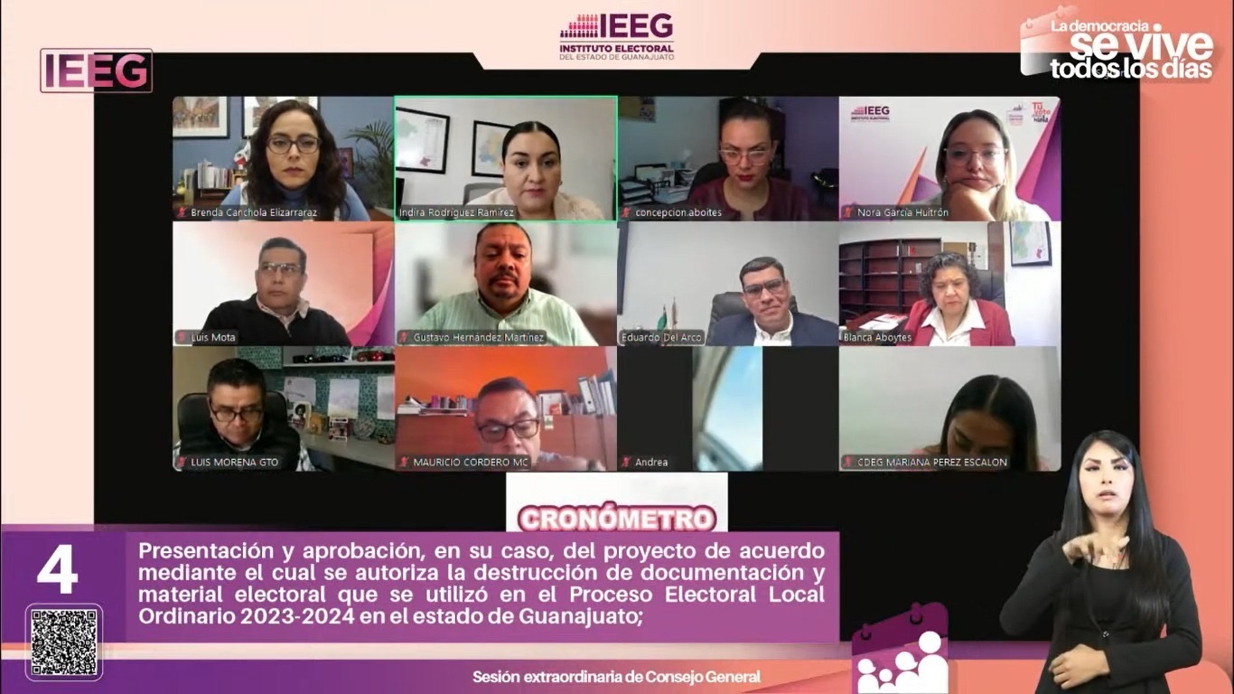 Guanajuato, Gto. — En sesión extraordinaria, el Consejo General del Instituto Electoral del Estado de Guanajuato (IEEG) autorizó la destrucción de la documentación y material electoral utilizado durante el Proceso Electoral Local Ordinario 2023-2024. Esta acción incluye la eliminación de votos válidos, votos nulos, boletas sobrantes y diversos materiales como urnas y cajas contenedoras no reutilizables.