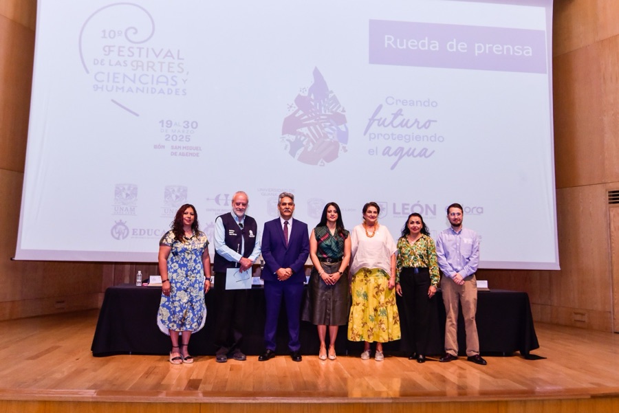 León, Gto., a 06 de marzo de 2025.- El Auditorio Mateo Herrera fue escenario de la rueda de prensa del 10° Festival de las Artes, Ciencias y Humanidades (FACH), que se llevará a cabo del 19 al 30 de marzo de 2025 en León y San Miguel de Allende, y en el cual colabora activamente la Universidad de Guanajuato (UG), Campus León.