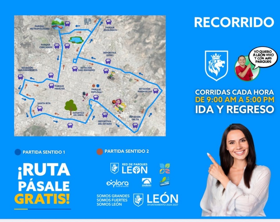 Con cuatro rutas activas y más de 17 paradas oficiales, el servicio estará disponible todos los sábados y domingos, de 9:00 a.m. a 5:00 p.m., con recorridos de ida y regreso. Las unidades están identificadas con el logo de la Red de Parques León, y cuentan con accesibilidad para personas con discapacidad, mujeres embarazadas y familias con carriolas.