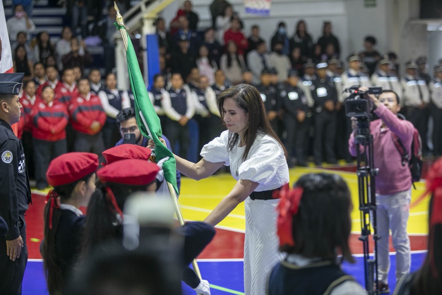 Como parte de la ceremonia, se abanderaron escoltas de diversas instituciones educativas del municipio, con el objetivo de fortalecer la cultura cívica y fomentar la realización de honores a la bandera en cada inicio de semana. En total, se entregaron banderas a dos escoltas de preescolar, seis de primaria y dos de secundaria.