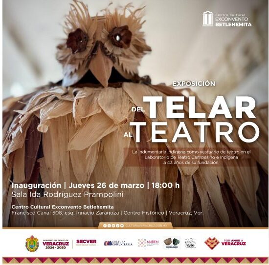 Xalapa, Ver.; 25 de marzo de 2026.– La Secretaría de Cultura de Veracruz (SECVER) anunció la inauguración de la exposición Del telar al teatro. Laboratorio de teatro campesino e indígena, que abrirá al público el próximo jueves 26 de marzo en el Centro Cultural Exconvento Betlehemita, en el puerto de Veracruz.